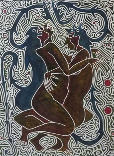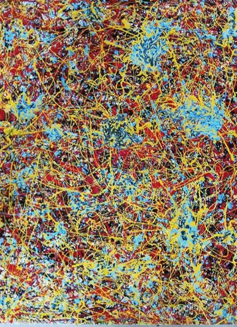 A spiritual awakening brought me to the artworld in 2017, I am inspired by nature, colour, form, composition, ethnic and tribal art have also had a huge impact on my practice especially that of the aborigines with their primitive yet complex mark making, my work has also been influence by some of the greats from the modernist movement with Jackson Pollock and Pablo Picasso being at the forefront but I do find my art practice is forever changing and evolving with new ideas and concepts filling every corner of my capacious imagination creativity running wild, light and darkness sprouting from a seed that was planted in childhood only to be awoken three and a half years ago, this seed has grown into a beautiful tree spreading its branches in all directions trying to catch the sunlight before it's cut down, a late starter that’s me, so I find myself regressing back to the innocence of infancy reclaiming what was rightfully mine, the joy of painting as if I was a child again, this explains my childlike approach to painting and a compulsion to create with passion and spontaneity, embracing and nurturing that lost child within. I have an appreciation for art in all its forms including poetry, never being one to conform in society I have always lived my life by my own rules until recently. I experience great pleasure from experimenting with all mediums but find comfort in painting and collage, these I believe take the form of abstract expressionism and figurative abstract the place I feel most at home, “embracing many individual styles marked in common by freedom of technique, a preference for dramatically large canvases, and a desire to give spontaneous expression to the unconscious.” (Mifflin and Harcourt, 2020).